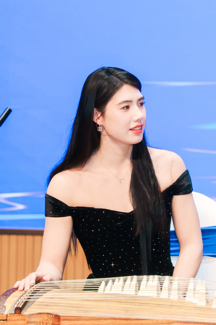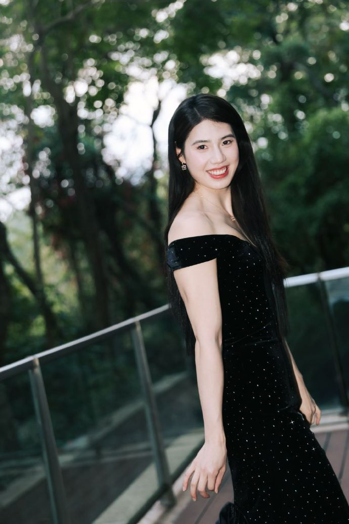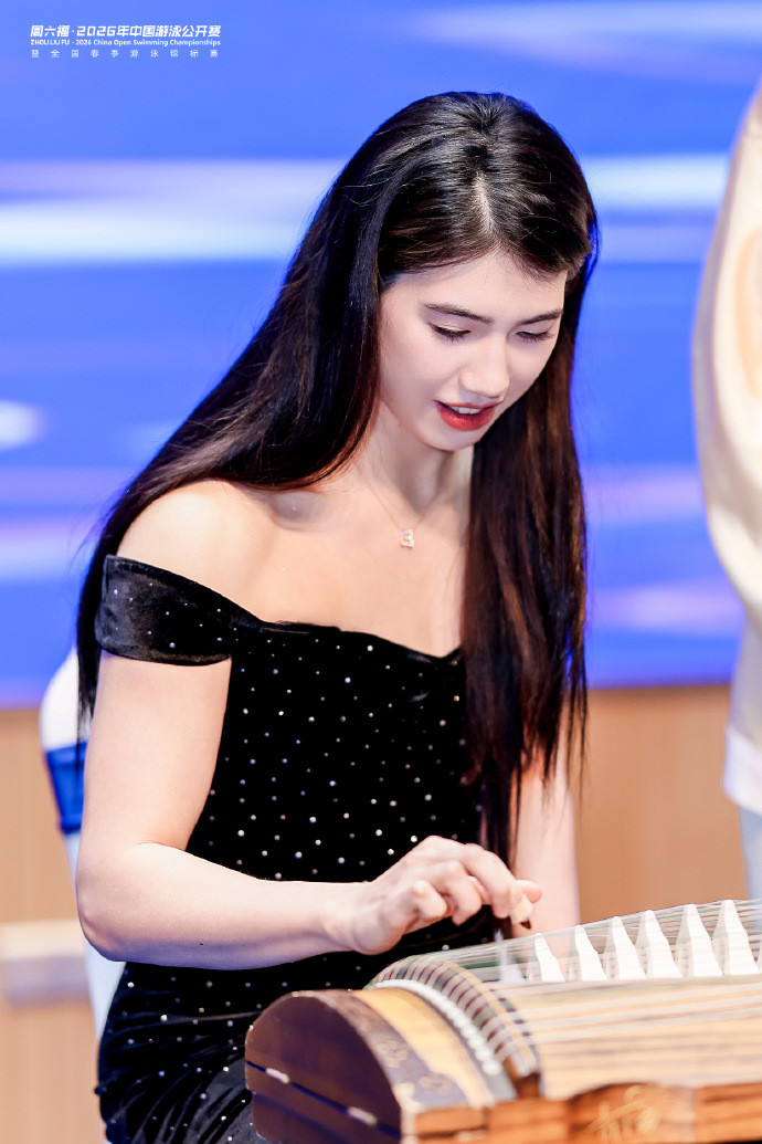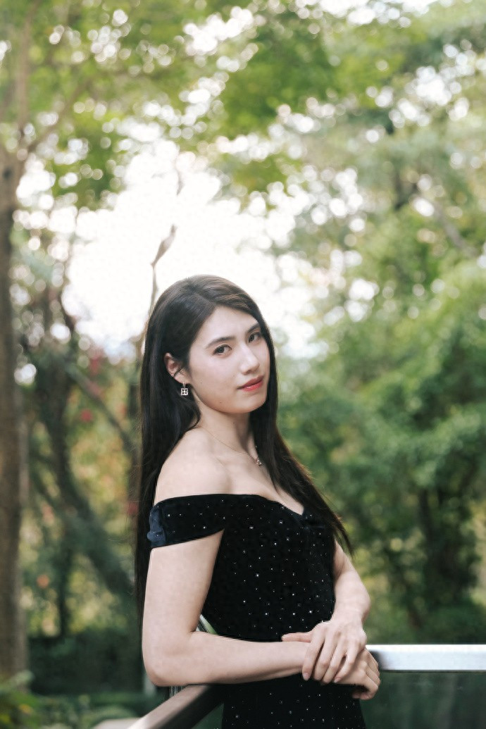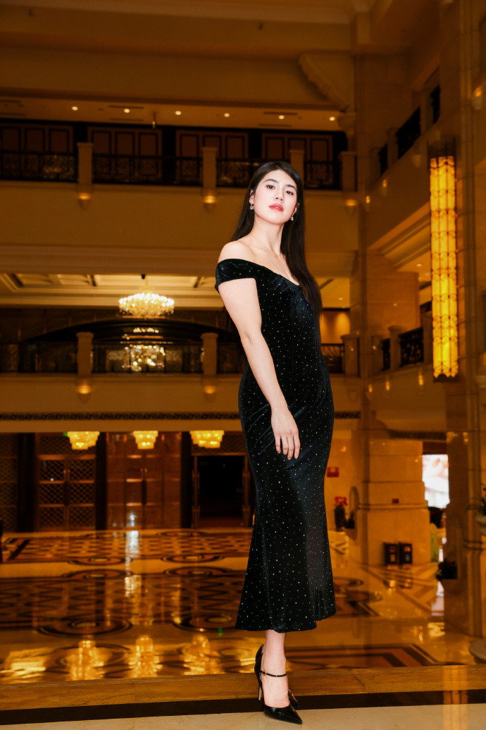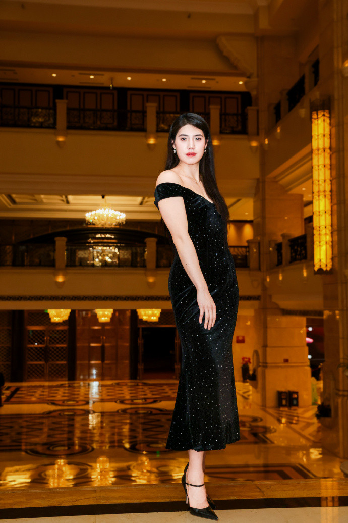 BET365体育官方网站 张雨霏一稔玄色露肩长裙脚踩高跟, 一眼难忘的教育韵味