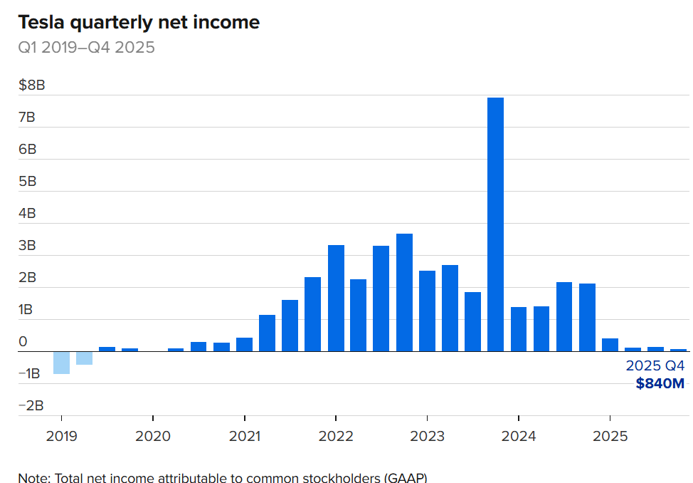 特斯拉旧年净利润显着低迷