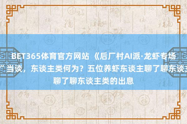 BET365体育官方网站 《后厂村AI派·龙虾专场》 | “龙虾”当谈,东谈主类何为?五位养虾东谈主聊了聊东谈主类的出息