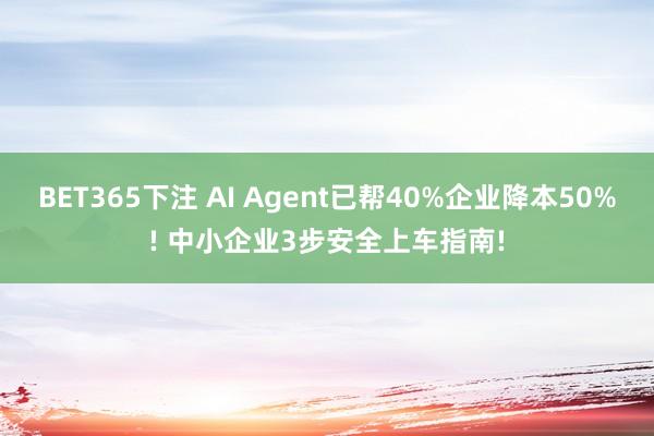 BET365下注 AI Agent已帮40%企业降本50%! 中小企业3步安全上车指南!