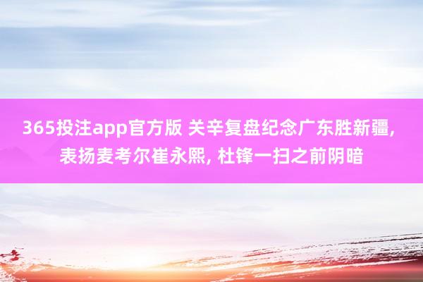 365投注app官方版 关辛复盘纪念广东胜新疆, 表扬麦考尔崔永熙, 杜锋一扫之前阴暗