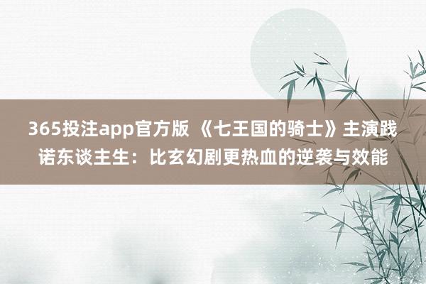 365投注app官方版 《七王国的骑士》主演践诺东谈主生:比玄幻剧更热血的逆袭与效能