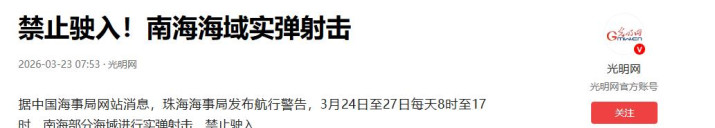 辞让驶入!南海海域实弹射击——2026-03-23 07:53·光明网
