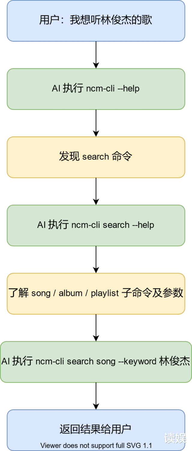 这个判断背后有一个很凯旋的逻辑:CLI 敕令是 AI Agent 最自然的器具调用神气。一个ncm-cli play --song xxx的敕令,对 Claude、OpenClaw 里的 AI、八成任何其他 Agent 框架来说,调用神气满盈不异。CLI 自己不依赖任何 AI 框架,它便是一个能被任何东西调用的原子器具。