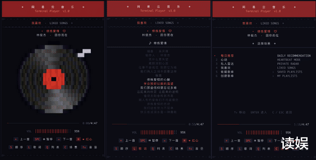 TUI 播放器是咱们比拟可爱的功能之一——黑胶旋动弹画、卡拉 OK 格调歌词同步、场景切换,在结尾里有一种纳闷的典礼感。