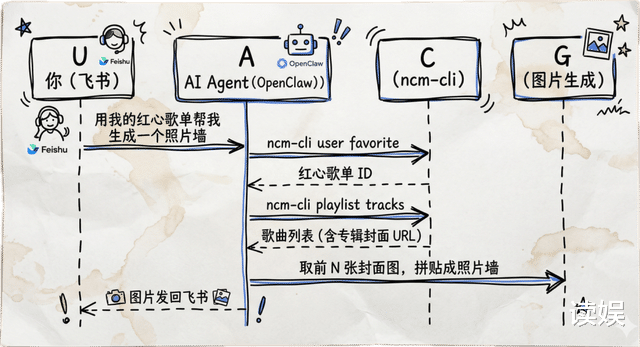 一个意旨真谛意旨真谛的例子:你在飞书发一句「用我的红心歌单帮我生成一个像片墙」。