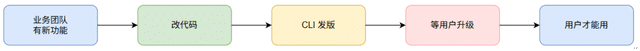 传统 CLI 有一个固有放荡:敕令是编译进代码的,新增一个功能,必须改代码、发版、等用户升级,整条链路很长。