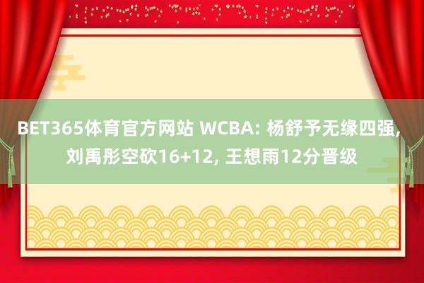 BET365体育官方网站 WCBA: 杨舒予无缘四强, 刘禹彤空砍16+12, 王想雨12分晋级