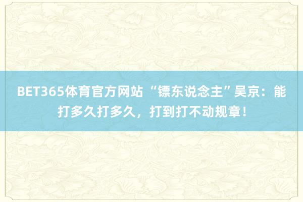BET365体育官方网站 “镖东说念主”吴京:能打多久打多久,打到打不动规章!