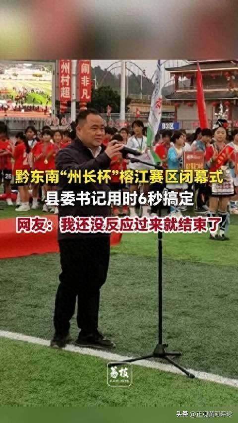 3月31日,在贵州黔东南“州长杯”青少年校园足球联赛榕江赛区落幕式上,县委通知致辞时只说了两个字——“落幕”,加上走当年的本领,短短6秒就划定,其时全场皆愣了一下,速即爆发出锐利的掌声和雀跃。