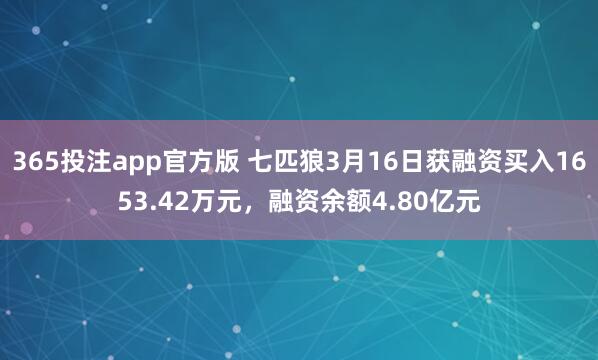 365投注app官方版 七匹狼3月16日获融资买入1653.42万元,融资余额4.80亿元
