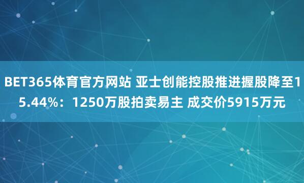 BET365体育官方网站 亚士创能控股推进握股降至15.44%:1250万股拍卖易主 成交价5915万元