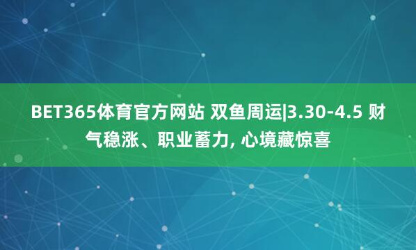 BET365体育官方网站 双鱼周运|3.30-4.5 财气稳涨、职业蓄力, 心境藏惊喜