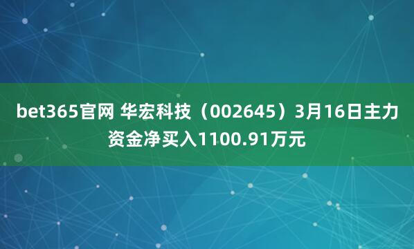 bet365官网 华宏科技(002645)3月16日主力资金净买入1100.91万元