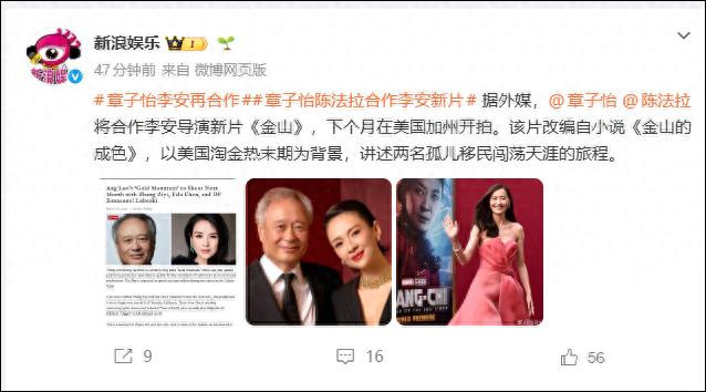 bet365官网 时隔20年, 李安章子怡再和解! 电影《金山》下月在好意思开拍, 拍摄瞻望消费3000万好意思元