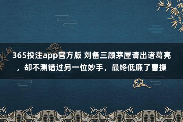 365投注app官方版 刘备三顾茅屋请出诸葛亮,却不测错过另一位妙手,最终低廉了曹操