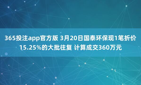 365投注app官方版 3月20日国泰环保现1笔折价15.25%的大批往复 计算成交360万元