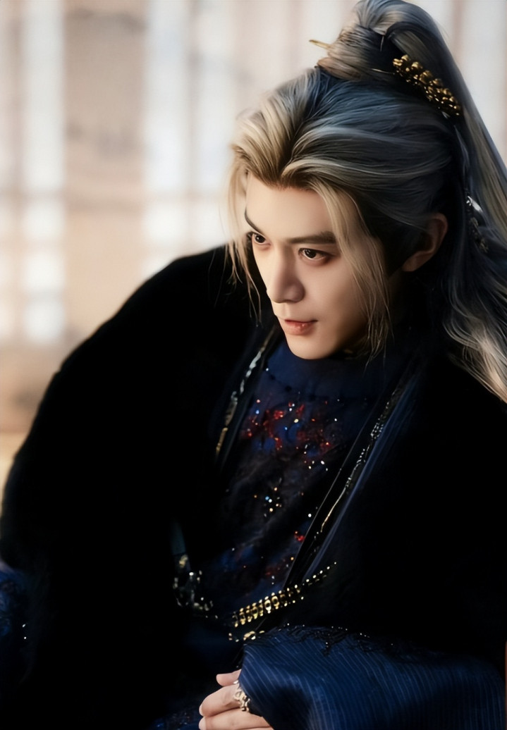 剧中邓凯饰演的疯批皇子皆旻光是看造型都十分带感,况兼他这个假发套并不是统共发丝都是死白死白的形貌。