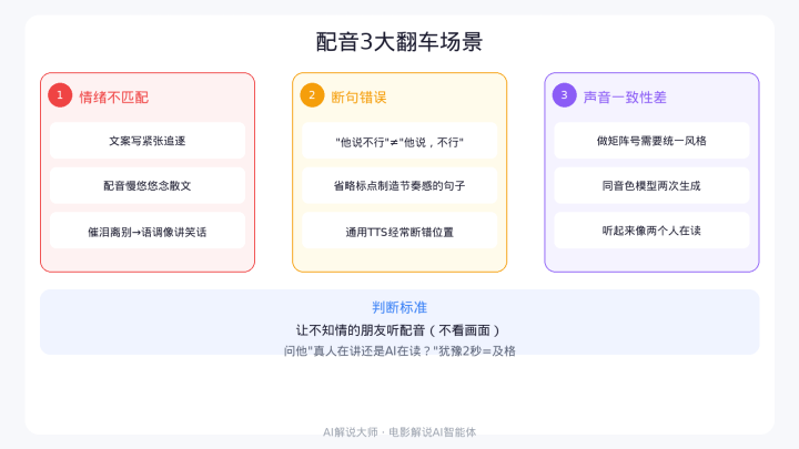 面前AI配音需要精明的三大翻车场景: