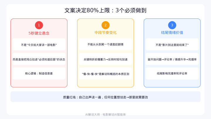 我把话说重少许:案牍质料决定一条电影讲明视频80%的上限。 配音可以后期调,画面可以再行对,但案牍要是根子上就不行,背面怎么补都救不转头。