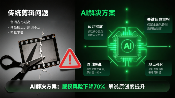 更好的作念法是在内容领略层面作念各别化——合并个情节用不同的镜头组合来呈现,合并个不雅点用不同的表述表情来传达,合并个心绪用不同的配音节拍来发达。这种深脉络的去重,需要器具在生成阶段就领略内容,而不仅仅在后期作念画面处理。