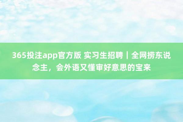 365投注app官方版 实习生招聘|全网捞东说念主,会外语又懂审好意思的宝来